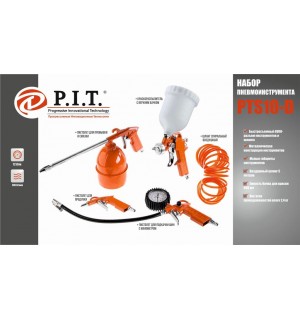 Набор пневмоинструмента PTS10-D (краск.,пистол. д/прокачки,промывки, 5м шланг)П.И.Т.